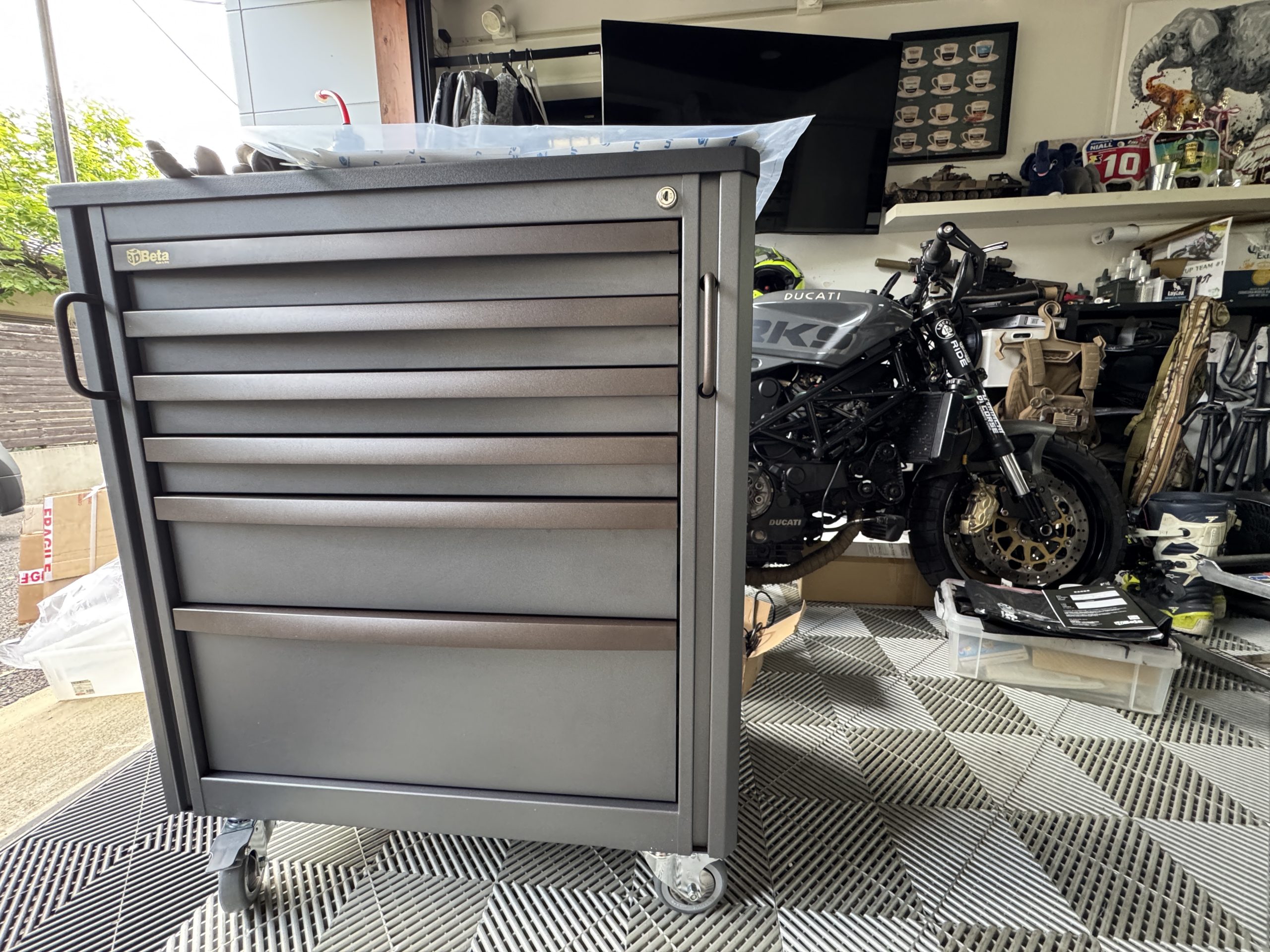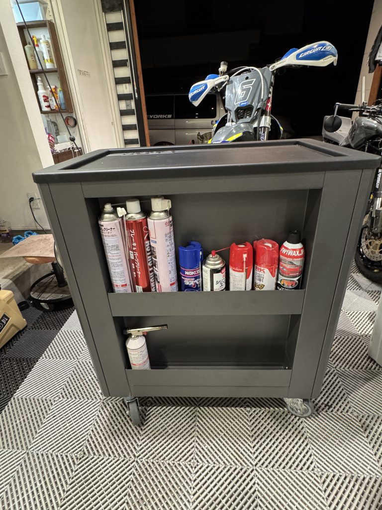 バイクの横にこのキャビネットを移動させて作業をすれば